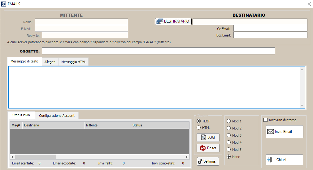 E' importante eseguire una corretta configurazione dei parametri SMTP per la connessione al servizio SMTP e l'invio dell'email.