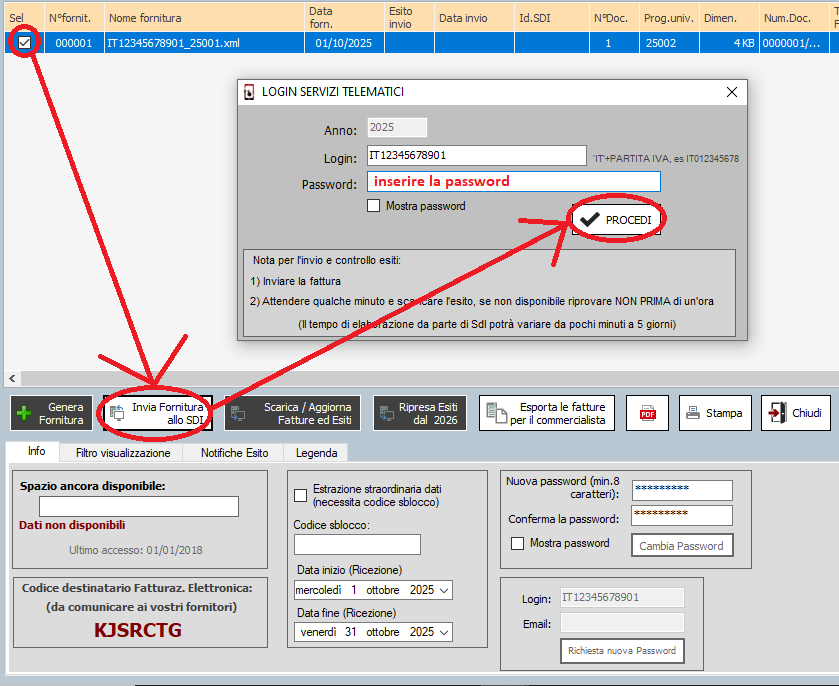 - verificare che la Login indicata sia corretta (IT+partitaIVA)
