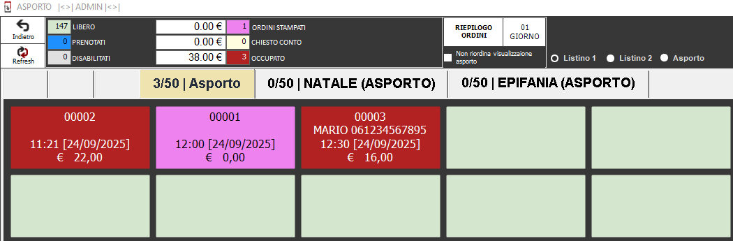 E' possibile definire più schede ASPORTO in modo da raggruppare ordini di tipologie differenti, ad esempio WEB, ASPORTO, NATALE, PASQUA etc.
