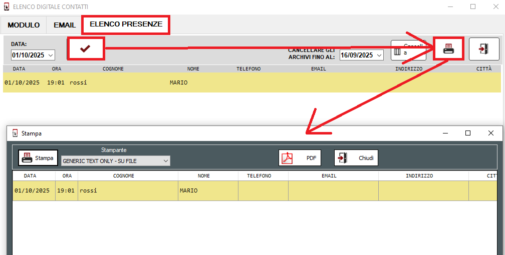 Consente di gestire e stampare i dati raccolti in una certa data: