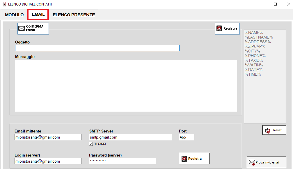 E' importante eseguire una corretta configurazione dei parametri SMTP per la connessione al servizio SMTP e l'invio dell'email.