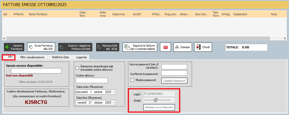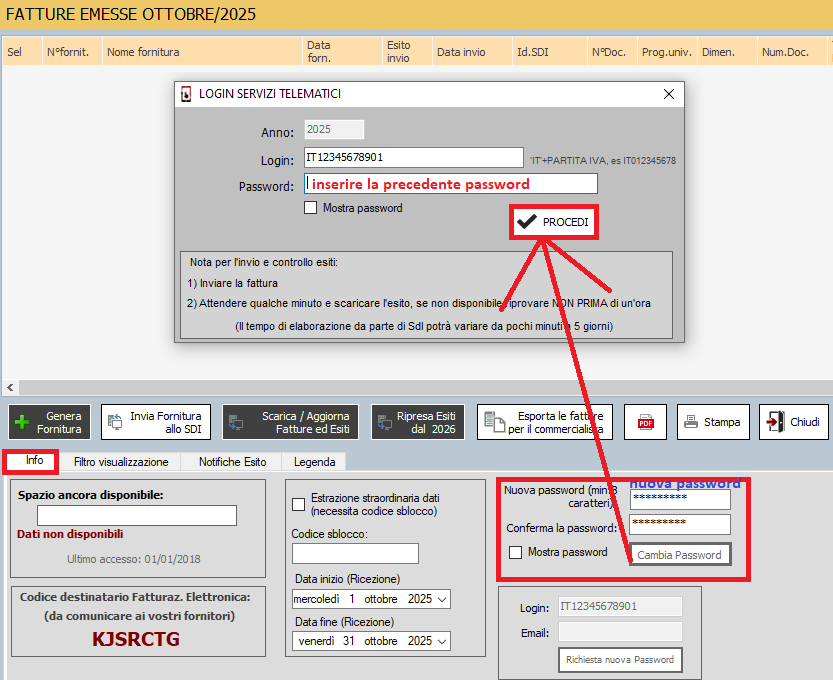 - verificare che la Login indicata sia corretta (IT+partitaIVA)