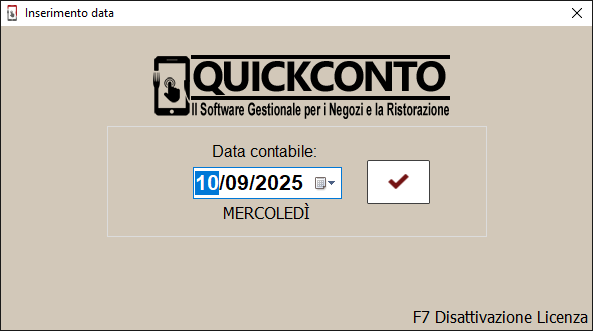 All'avvio del programma è richiesto di selezionare/confermare la data di accesso.